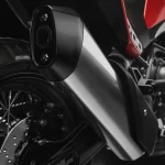 Este nuevo escape le da a la moto un diseño lineal y armonioso. Su posición elevada, ideal para todo terreno, lo protege eficazmente de golpes, barro y escombros levantados del suelo.